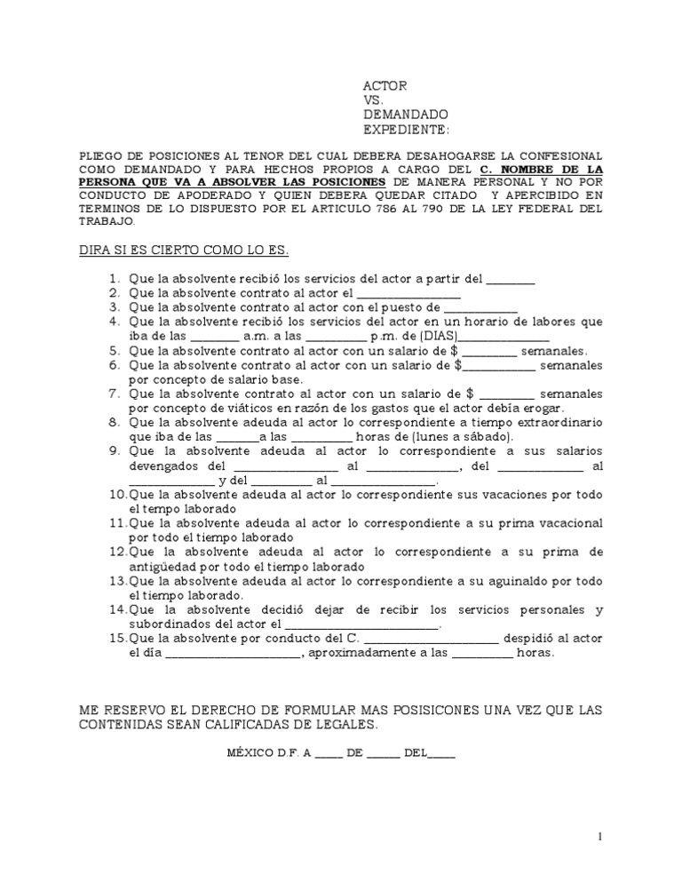 Modelo De Pliego De Posiciones Derecho Mexicano