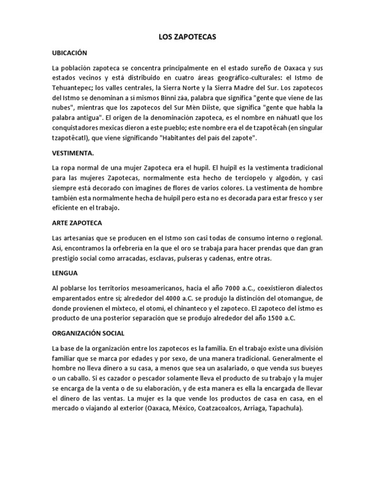 Monografia Zapotecas Pdf Cultura General Idiomas
