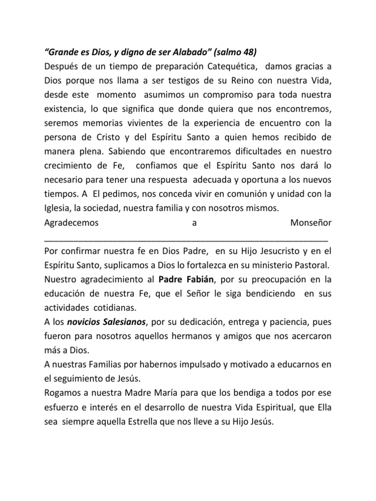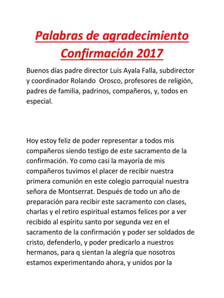Palabras De Agradecimiento Confirmacion Pdf Espiritu Santo Fe