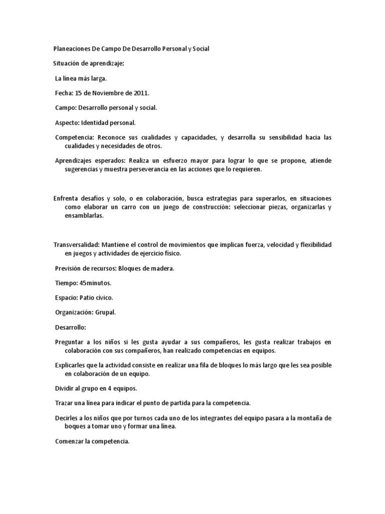 Planeaciones De Campo De Desarrollo Personal Y Social Pdf Educacion De La Primera Infancia Las Emociones