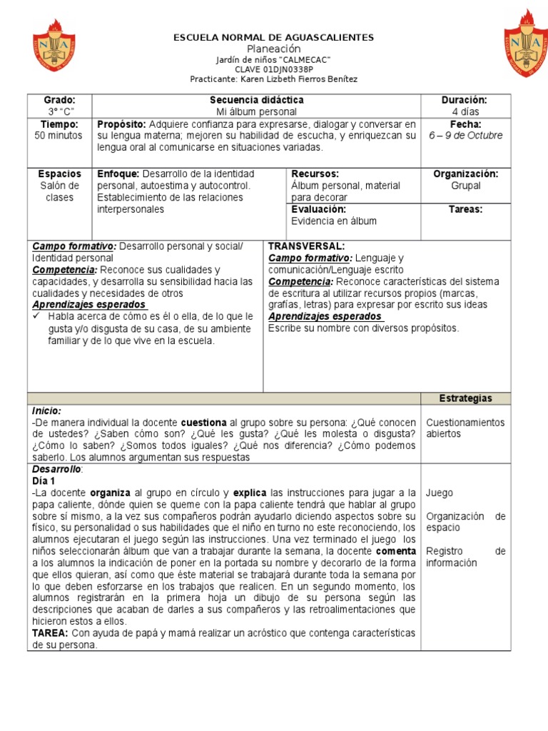 Secuencia Didactica Desarrollo Personal Y Social Pdf Jardin De Infancia Ciencia Cognitiva