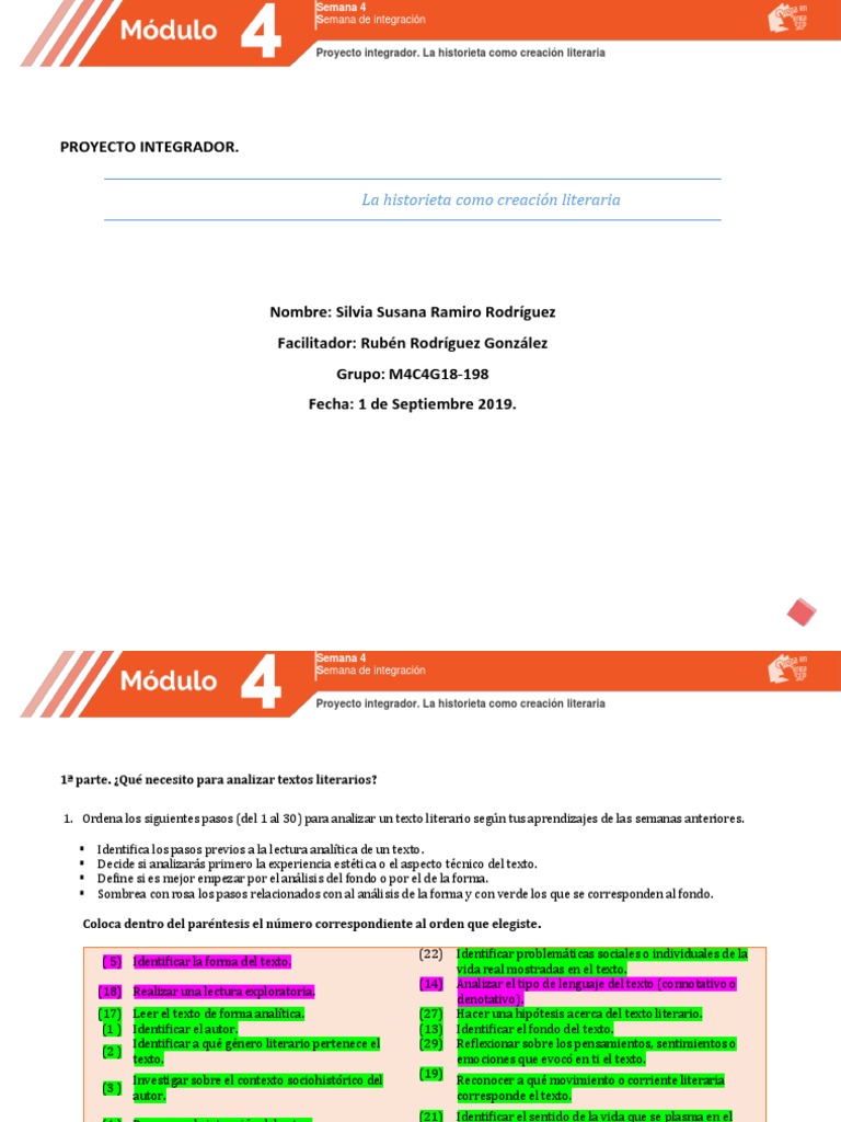F6442464 Docx Semana 4 Semana De Integraci U00f3n Proyecto Integrador La Historieta Como Creaci U00f3n Literaria La Historieta Como Creaci U00f3n Literaria 1 U00aa Course Hero