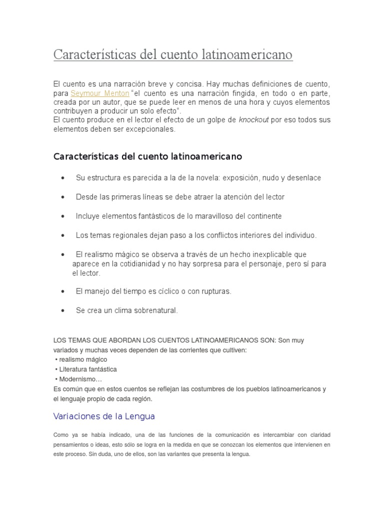 Caracteristicas Del Cuento Latinoamericano