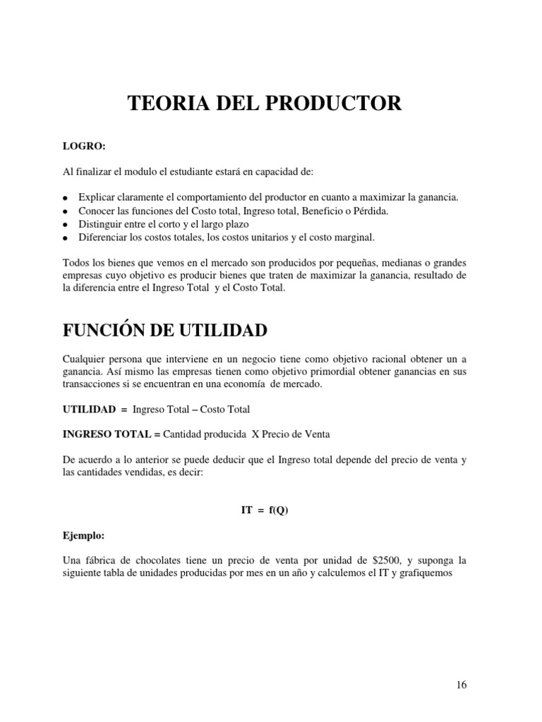 Teoria Del Productor Pdf Beneficio Economia Ciencias Economicas
