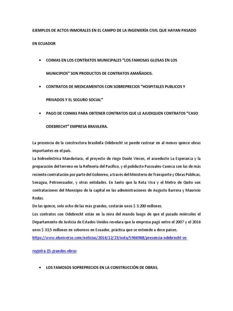 Ejemplos De Actos Inmorales En El Campo De La Ingenieria Civil Que Hayan Pasado En Ecuador Pdf Ecuador Gobierno