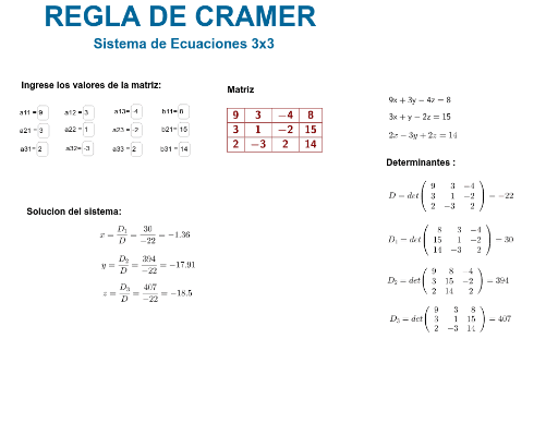 Regla De Cramer Sistema De Ecuaciones 3x3 Geogebra