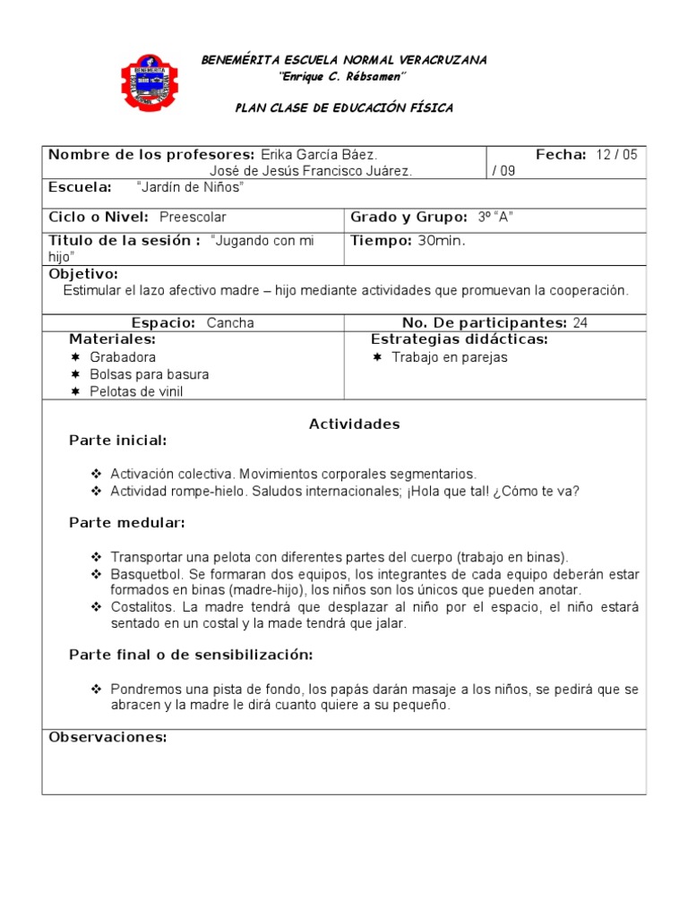 Actividades de matrogimnasia pdf. Matrogimnasia es el ejercicio fsico que es llevado cabo por el hijo y la madre con la finalidad de fortalecer los lazos de unin y de actitud cooperadora as como de las diversas formas de relacin madre-hijo la matrogimnasia es demostrada por medio de. Con lo que la actividad lúdica de la matrogimnasia realiza en los entornos de la educación inicial y primaria lugar donde los padres son un engranaje imprescindible del desarrollo del niño y donde la formación de. Corrección Significativa La participación del maestroa o responsable de la matrogimnasia debe estar en contacto siempre directo del proceso de enseñanza-aprendizaje para lograr rescatar los puntos de vista de todos las propuestas sugeridas de las actividades variantes o diferentes formas de.