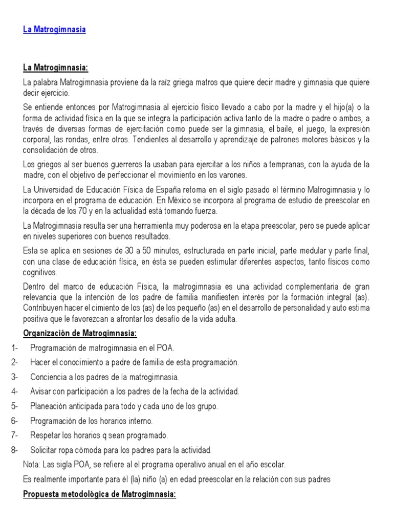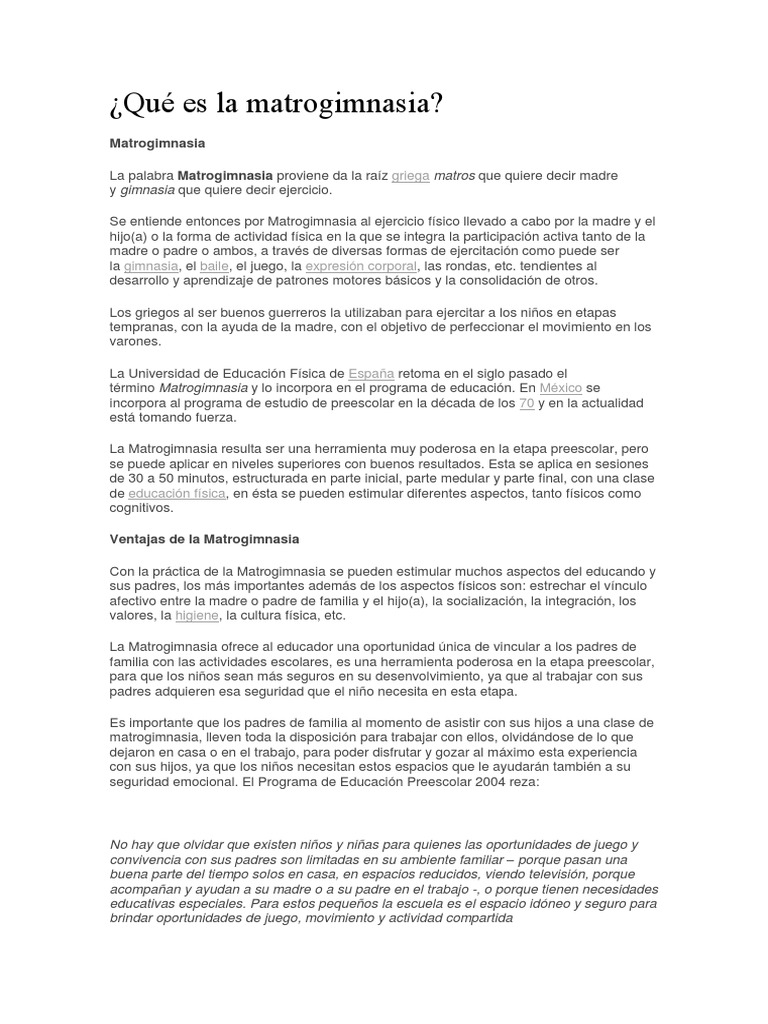 Que Es La Matrogimnasia Pdf Educacion Fisica Jardin De Infancia