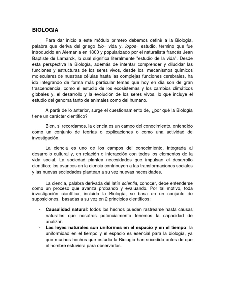 1 El Caracter Cientifico De La Biologia Biologia Braulio