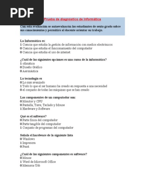 Examen De Diagnostico De Informatica Primer Grado De Secundaria Pdf Hardware De La Computadora Unidad Central De Procesamiento