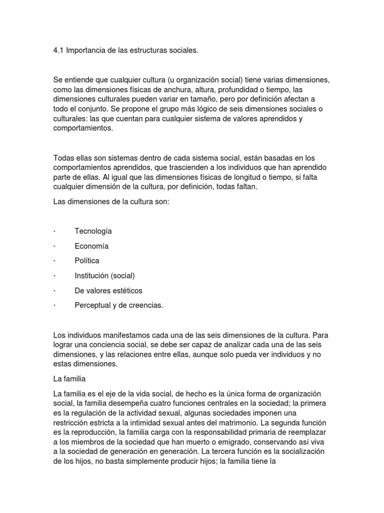 4 1 Importancia De La Estructuras Sociales Pdf Sociedad Familia