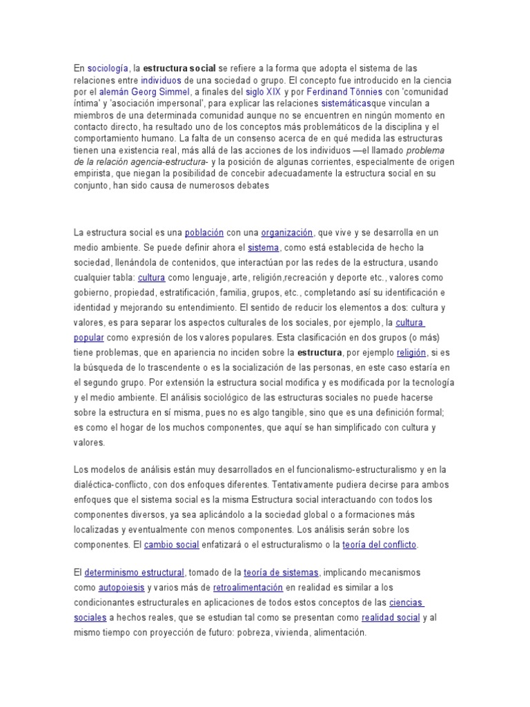 Importancia De La Estructura Social Pdf Sociedad Estratificacion Social