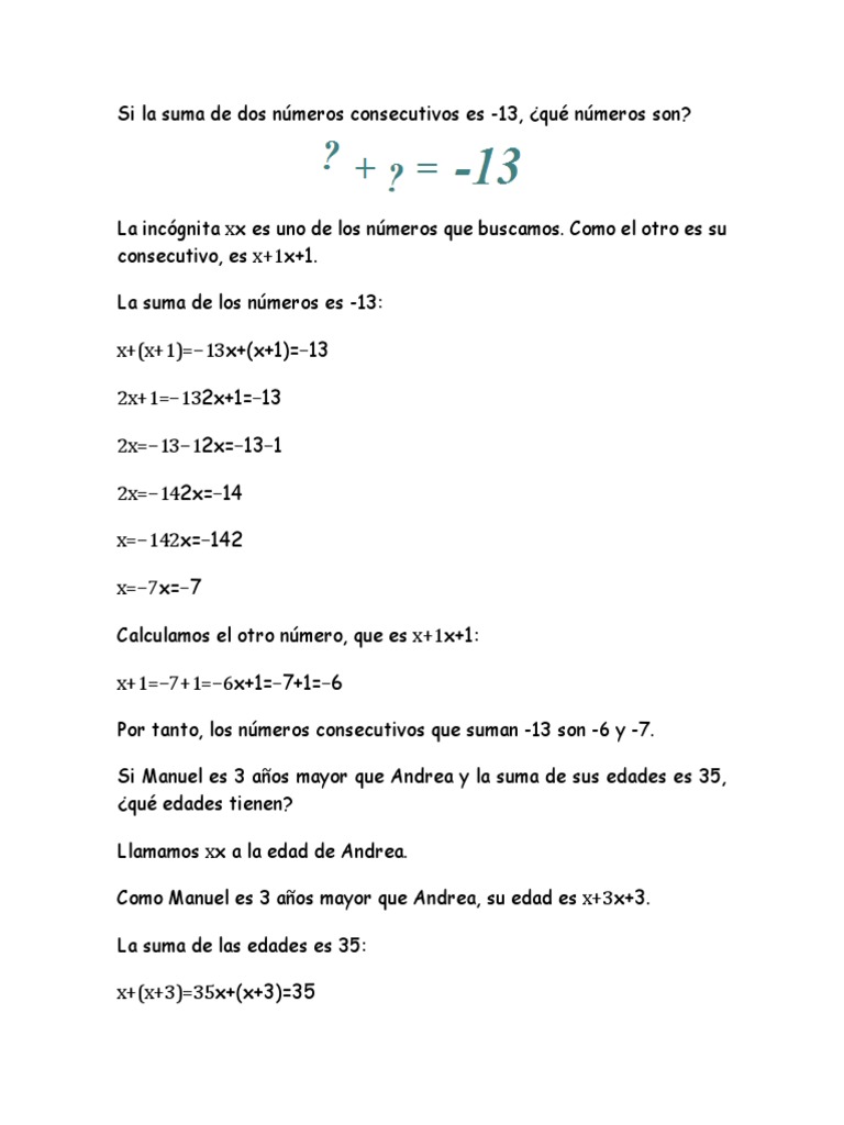 Si La Suma De Dos Numeros Consecutivos Es Pdf