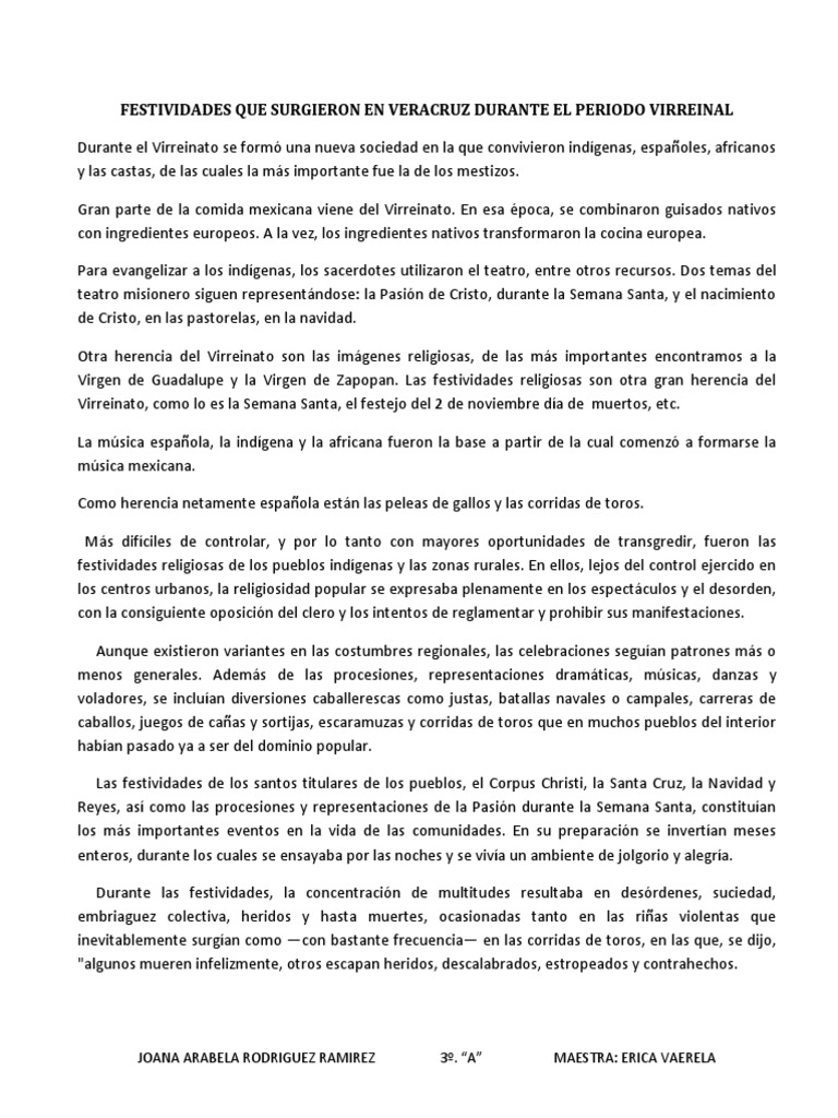FESTIVIDADES QUE SURGIERON EN VERACRUZ DURANTE EL PERIODO VIRREINAL Durante el Virreinato se formó una nueva sociedad en la que convivieron indígenas españoles africanos y las castas de las cuales la más importante fue la de los mestizos. JOANA ARABELA RODRIGUEZ RAMIREZ 3.