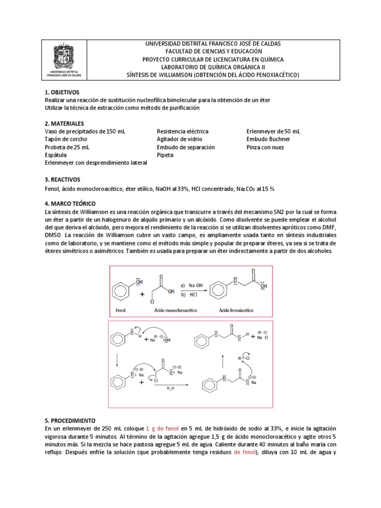 Obtencion De Eteres Mediante La Reaccion De Williamson Sintesis Del Acido Fenoxiacetico Studocu