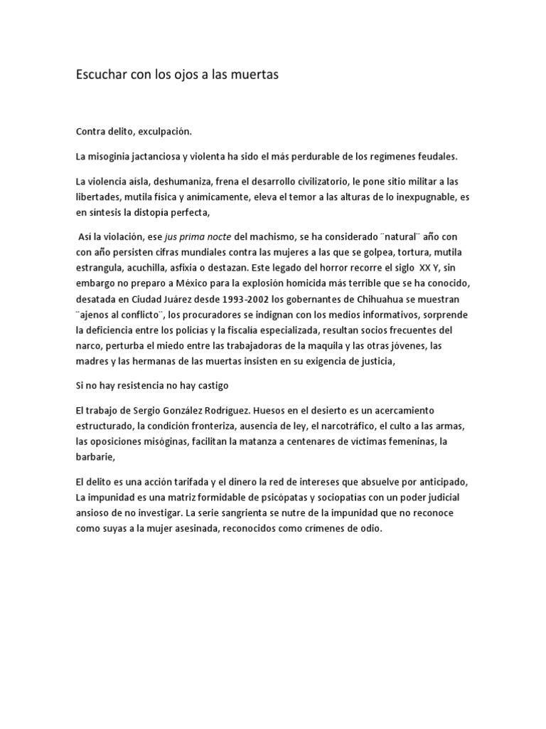 Resumen Del Articulo Escuchar Con Los Ojos A Las Muertas Pdf Ciudad Juarez Homicidio