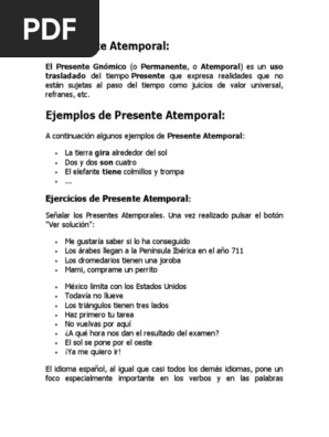 El Presente Atemporal Pdf Verbo Gramatica