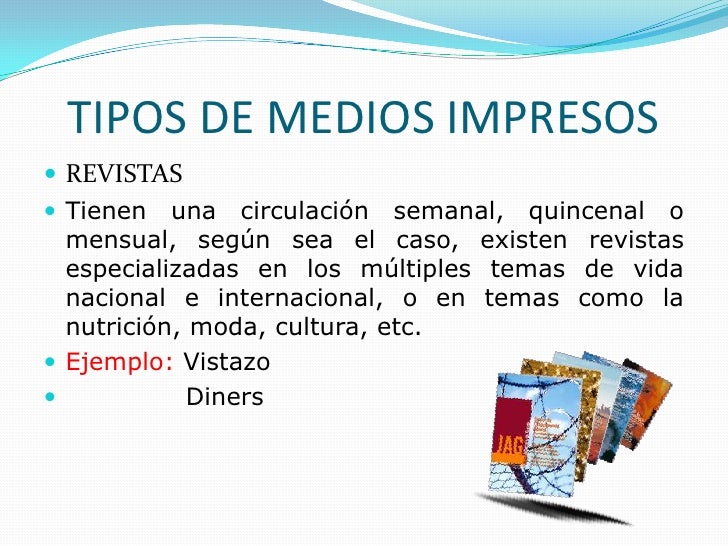 Ejemplos de medios impresos son revistas periódicos folletos boletines revistas académicas y otros materiales que se imprimen físicamente en papel. Mientras que los medios impresos una.