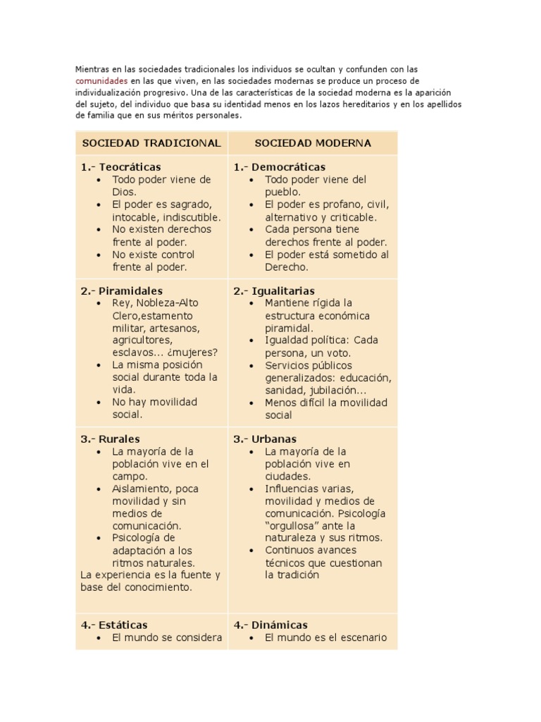 Cuales Son Las Diferencias Entre Las Sociedades Tradicionales Y Las Sociedades Modernas Brainly Lat