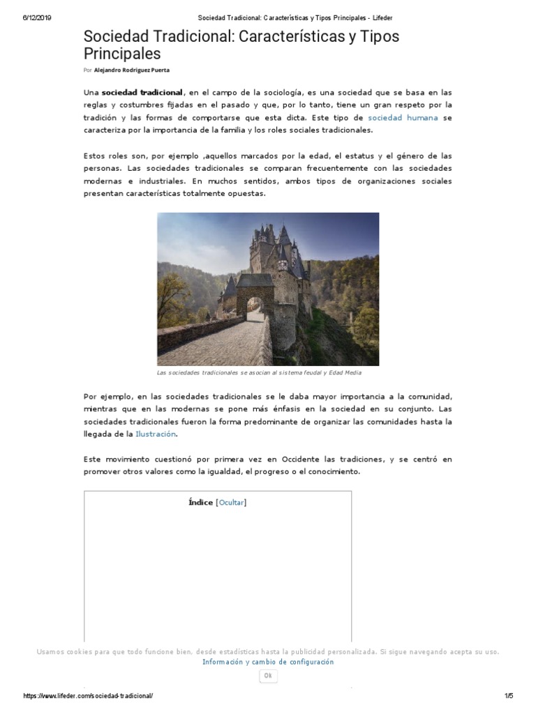 Sociedad Tradicional Caracteristicas Y Tipos Principales Lifeder Pdf Pdf Emile Durkheim Sociedad