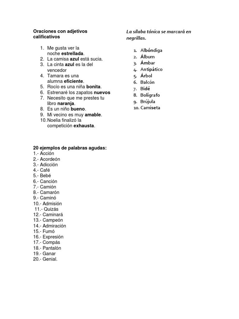 Ejemplos De Oraciones Con Adjetivos Pdf