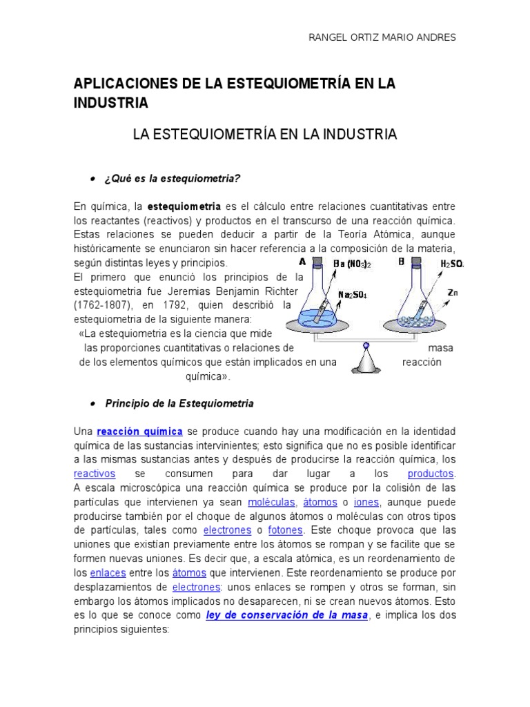 Aplicaciones De La Estequiometria En La Industria Pdf Estequiometria Reacciones Quimicas