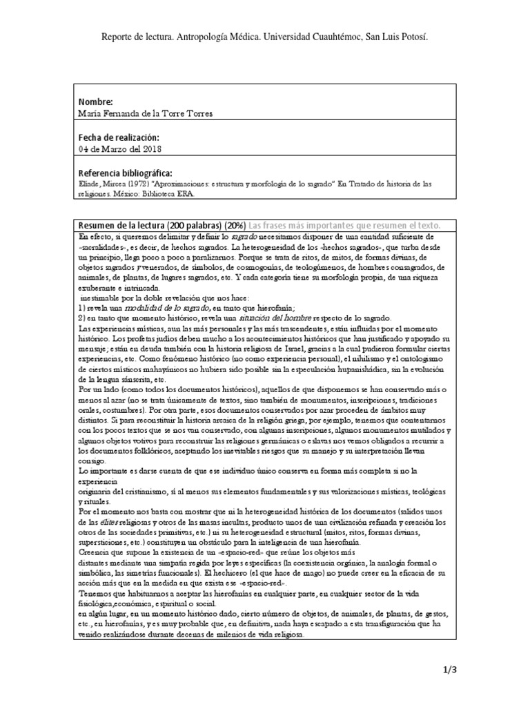 Reporte De Lectura De Estructura Y Morfologia De Lo Sagrado Pdf Sagrado Lectura Proceso