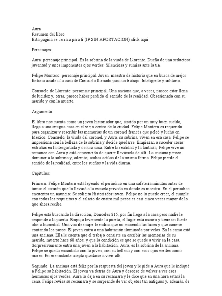 Aura Capitulos 1 Y 2 Resumen Resumenes Yissel99