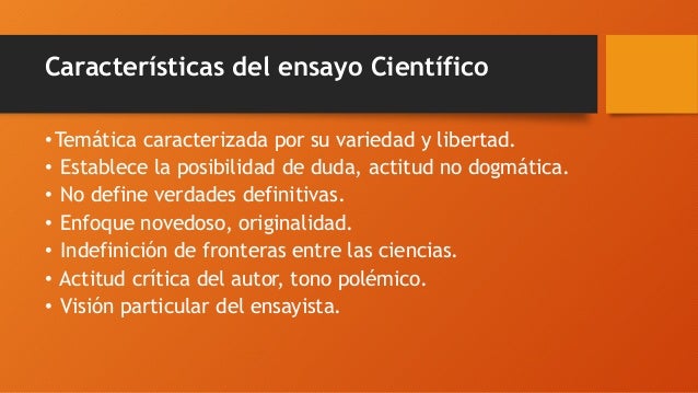 Quiere decir que en un ensayo se ANALIZA o INTERPRETA un. Características del ensayo son las siguientes.