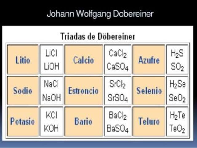 Dobereiner aportaciones a la tabla periodica. J ohann Wolfgang Döbereiner 1780-1849 profesor de Química en la universidad de Jena hizo uno de los primeros intentos de clasificación de los elementos cuando en 1817 mostró que el estroncio tenía una masa atómica aproximadamente igual a la media aritmética de las masas atómicas del Ca y del Ba elementos similares a él.