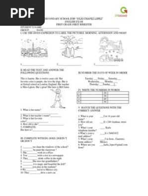 Examen De Ingles Para Primer Grado Examen Vanessa Jimenez