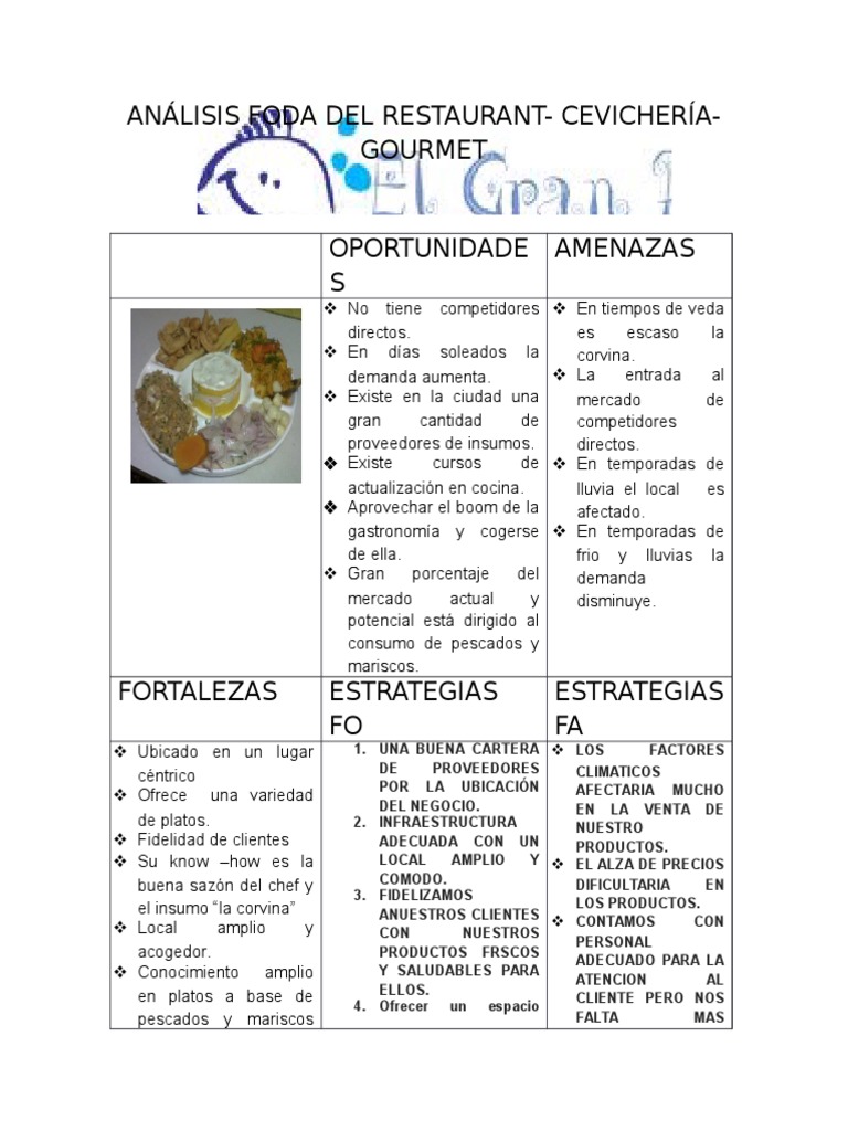 Analisis Foda Del Restaurant Pdf Analisis Foda Calidad Comercial